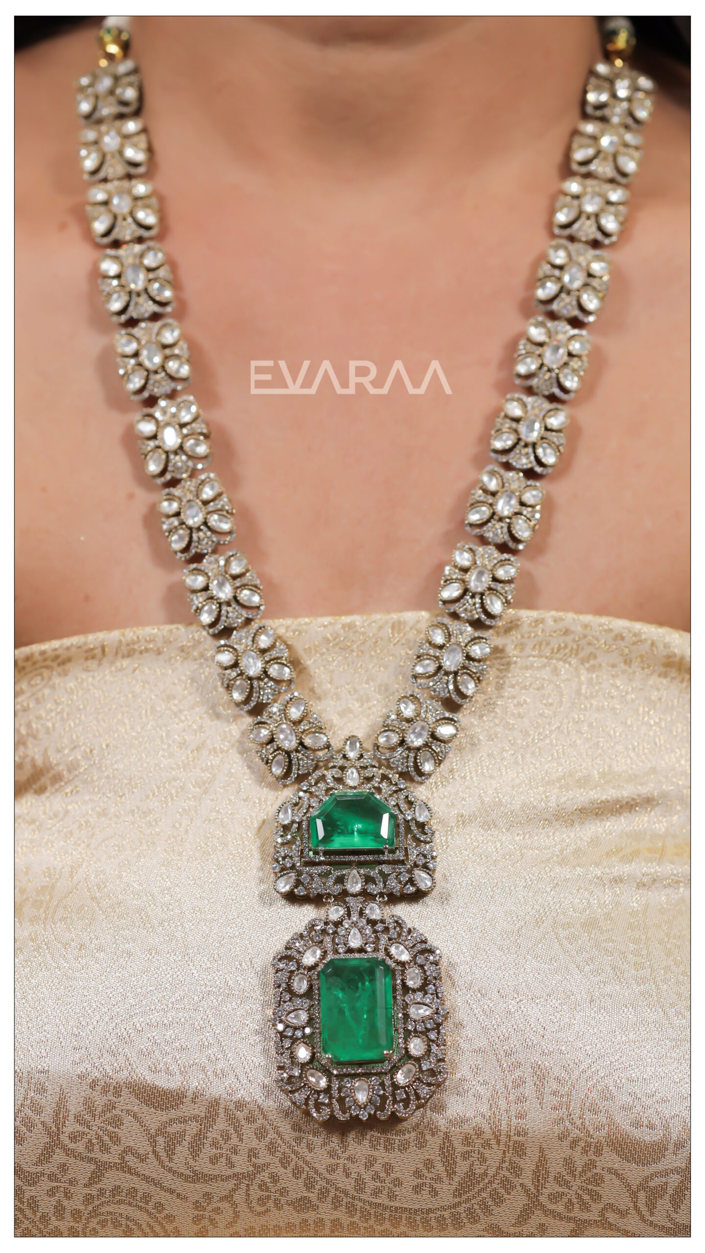 ​It appears to be a Haram or long necklace typically worn for weddings or grand formal occasions, showcasing exquisite craftsmanship and a rich, traditional aesthetic.